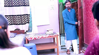 The schoolteacher explained to his college girl how to solve a math problem video with hindi voice